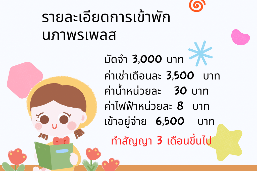 เดือนละ3500/ค่าประกัน 3000 (ไม่มีสัตว์เลี้ยง)